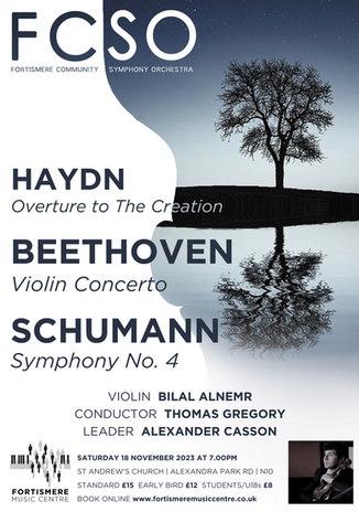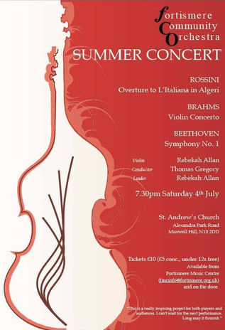Rehearsals for our next concert on Sunday, 23rd November start on Tuesday, 16th September. We are inviting new string players to join us for this fabulous programme. Contact fmcinfo@fortismere.org.uk if interested.